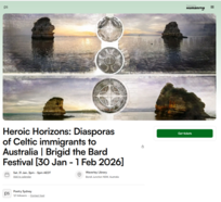 - Saturday, 31 January at 3.00 pm: Poetry Sydney Heroic Horizons: Celtic Diasporas Poetry Event - showcases four women poets whose work interrogates the cultural, emotional, and historical legacies of Irish and Scottish migration to Australia. Through poetry and performance, Linda Adair, Anne Casey, Annemaree Daziel and Melita Rowston trace diasporic journeys shaped by displacement, endurance, inheritance, and imagination, situating Celtic migration within the broader context of colonial Australian history, while acknowledging the complex realities of colonial presence on unceded Aboriginal lands. This event is presented as part of the Brigid the Bard Festival 2026 by Poetry Sydney in partnership with the Prankqueans, the Government of Ireland, Waverley Council, the Consulate General of Ireland, Sydney, and the Irish Support Agency NSW. Venue: Waverley Library, Waverley Library, 32-48 Denison Street, Bondi Junction, Sydney. Bookings.
